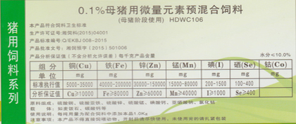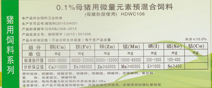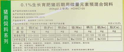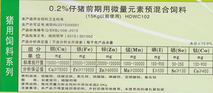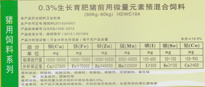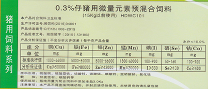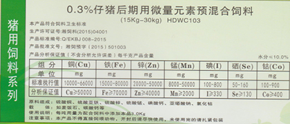 0.3%仔豬前期用微量元素預混合飼料